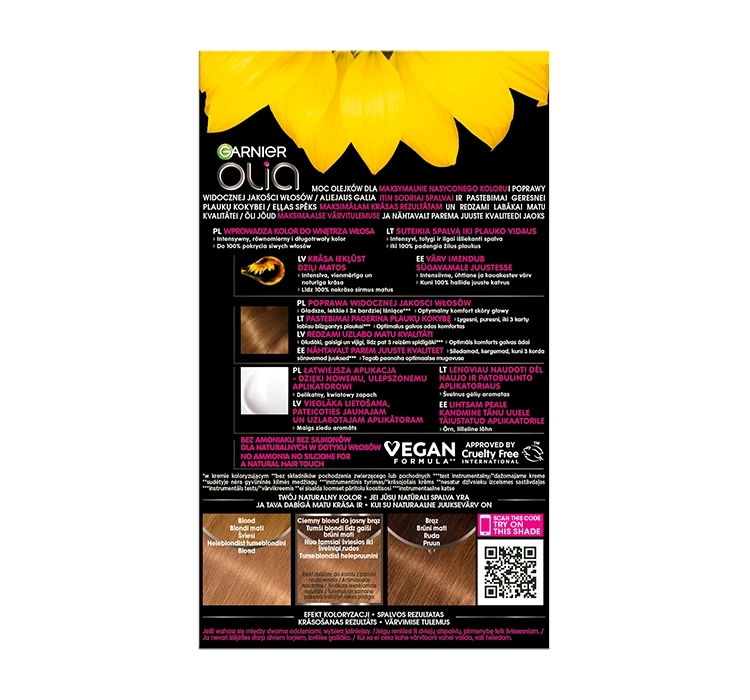 Garnier Olia - це повна палітра стійких фарб для волосся. Унікальна формула фарб містить до 60 відсотків натуральних квіткових олійок, які сприяють проникненню кольорів і гарантують насичений, яскравий відтінок.