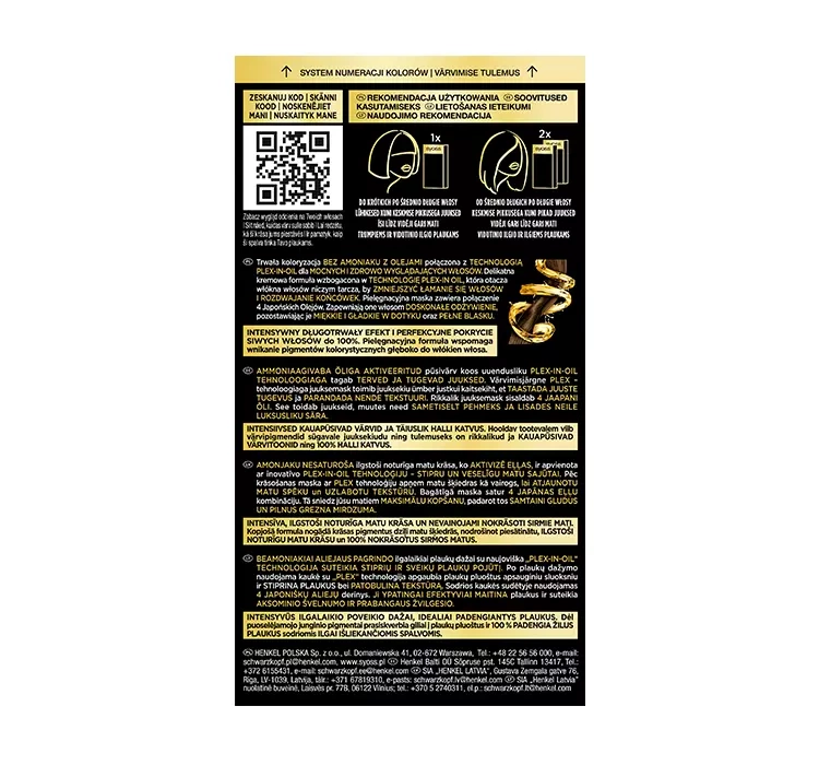 Oleo Intense - це сила масел, які піклуються про Ваше волосся, освітлюючи його до 3 рівнів. Фарба не містить аміаку, забезпечуючи волоссю професійне, делікатне фарбування.