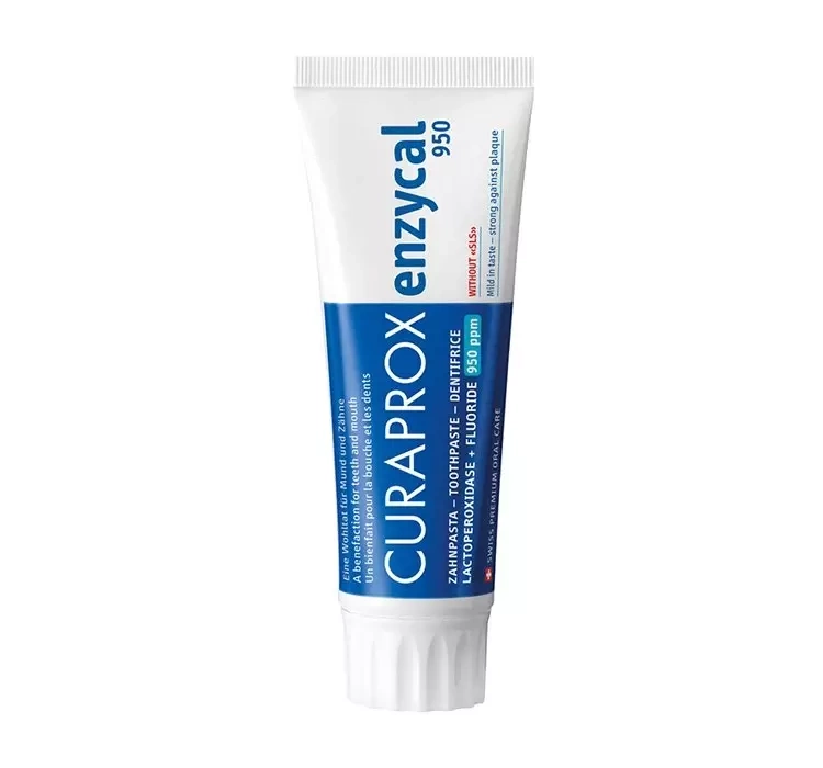 Паста посилена трьома ферментами, які містяться у слині та активних фторах, завдяки чому діє зміцнююче на емаль, захищаючи зуби від появи зубного нальоту. У пасті Curaprox Enzycal 950 шкідливий SLS замінено його аналогом з нейтральними властивостями. Паста також не містить сильних ефірних олій.