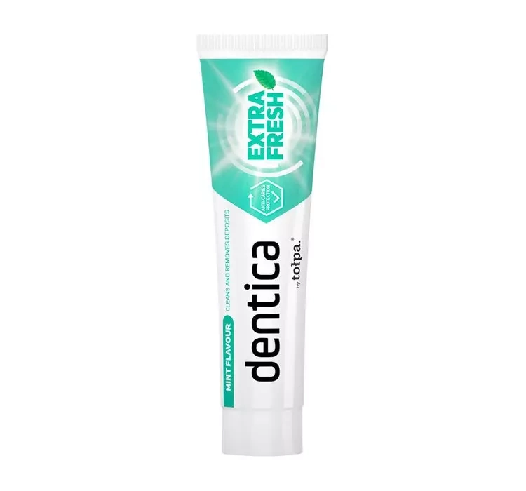Зубна паста dentica Extra Fresh забезпечує тривалий захист від карієсу. Вона має приємний та освіжаючий м’ятний смак. Паста tołpa dentica Extra Fresh ретельно очищає зуби та міжзубні проміжки від бактерій, залишаючи надовго відчуття виняткової свіжості. Ви готові до супер свіжості?
