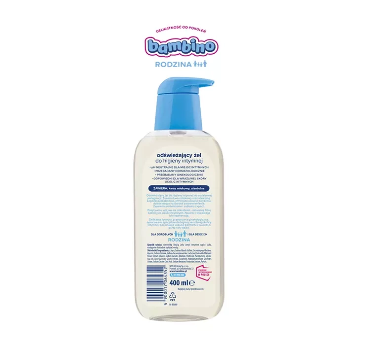 Заспокійливий гель для інтимної гігієни для щоденного догляду. Призначений для всієї родини, дітей старше 3 років та дорослих - його можна використовувати у будь-якому віці, при потребі для освіження до, та після басейну, під час подорожей, після депіляції інтимних місць. Пом'якшує подразнення, зменшує печіння, заспокоює незначні потертості та почервоніння. Дарує полегшення та делікатний аромат. Лагідна перевірена дерматологічна формула, розроблена спеціально для гігієни чутливої інтимної зони, залишає відчуття комфорту та свіжості протягом усього дня.