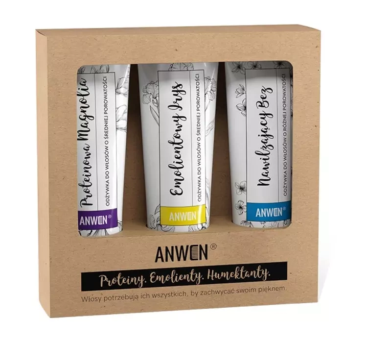 Волосся із середнім рівнем пористості часто схильне до розпушування, і його може бути складно розчісувати (але в меншій мірі, ніж волосся з високим рівнем пористості), тому воно потребує відповідного догляду. Набір включає три кондиціонери, пристосовані до потреб волосся середньої пористості. Кондиціонери забезпечують волосся білками, пом’якшуючими та зволожуючими речовинами, необхідними для підтримки міцного, здорового і красивого волосся. Створюючи свою продукцію, бренд Anwen дбає про навколишнє середовище, тому тюбики кондиціонерів виготовлені з ПЛР - переробленого матеріалу.