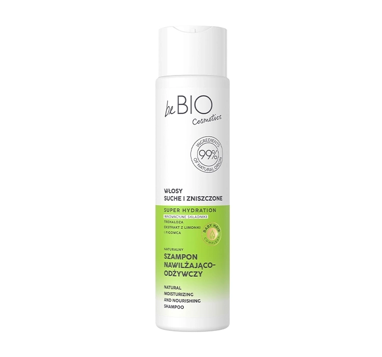 Натуральний шампунь для сухого волосся марки beBIO збагачений екстрактом лайма, авокадо, фіґи і пажитника. Шампунь містить аж 99,3% природного походження. Завдяки ним волосся чисте, м'яке і неймовірно гладеньке. Засіб чинить зволожуючу і пом’якшувальну дію. Лайм багатий мінералами і поживними речовинами, які регенерують сухі пасма та надають їм шовковистий блиск. Авокадо зволожує, розгладжує і зміцнює волосся. Всі компоненти утворюють ідеальну суміш для догляду за сухим волоссям. Ніжний аромат надовго огортає і освіжає пасма.