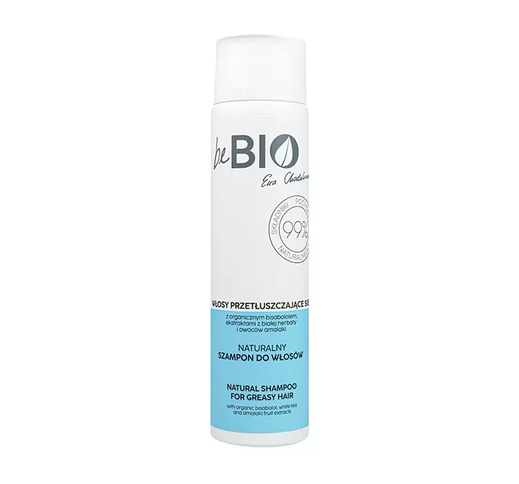 Натуральний шампунь для жирного волосся марки beBIO збагачений органічним екстрактом бісабололу, білого чаю та плодів амли. Шампунь містить аж 99,3% натуральних компонентів, які роблять волосся чистим, м'яким і неймовірно гладеньким. Косметичний засіб чинить нормалізуючу та зміцнюючу дію, а також запобігає надмірному виділенню себуму. Екстракт бісабололу має загоюючі та регенеруючі властивості. Він заспокоює подразнення, забезпечує протизапальну і антибактеріальну дію. Натомість, білий чай, забезпечує волоссю належний рівень зволоження, заспокоює шкіру голови та захищає пасма від шкідливого впливу зовнішніх факторів. Усі компоненти утворюють ідеальну суміш для догляду за жирним волоссям, а делікатний аромат огортає пасма свіжими нотами.