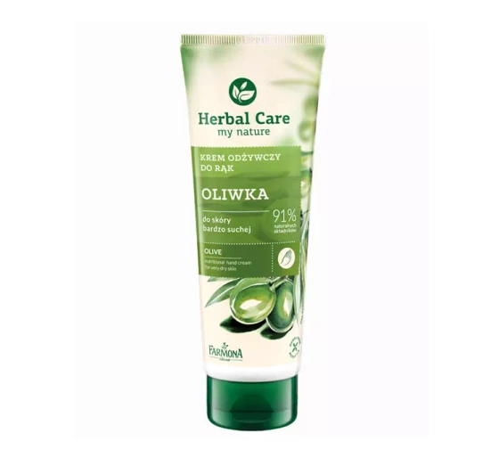 Живильний крем для рук Olive Farmona Herbal Care стане відмінним вибором для догляду за дуже сухою шкірою. Крем ефективно відновлює ліпідний шар епідермісу, заповнює дефіцит живильних речовин і запобігає сухості рук. При регулярному використанні шкіра стає гладкою і м'якою на дотик і більш стійкою до шкідливого впливу зовнішніх факторів. Крім того, глибоко зволожує та пом'якшує шкіру, підвищуючи її еластичність. Крем збагачений екстрактом оливкового листя, рослинним біокомплексом, Inutec, сечовиною, маслом Ши та бджолиним воском.