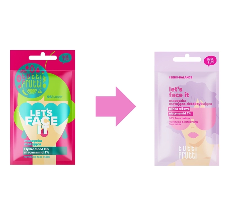 Tutti Frutti Let's Face It - унікальна маска для обличчя, що містить 96% інгредієнтів натурального походження.