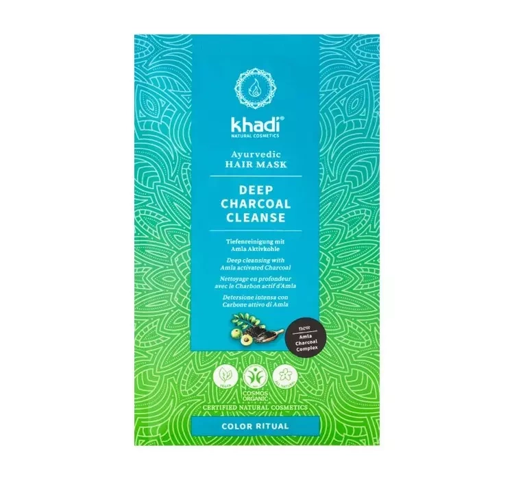 Маска для волосся Khadi Ayurvedic Deep Charcoal Cleanse - це глибоко очищаюча маска для волосся та шкіри голови з активованим вугіллям з фруктів Amla. Це ефективний детокс для волосся та ідеальна очищаюча процедура перед фарбуванням рослинними фарбами Khadi.
