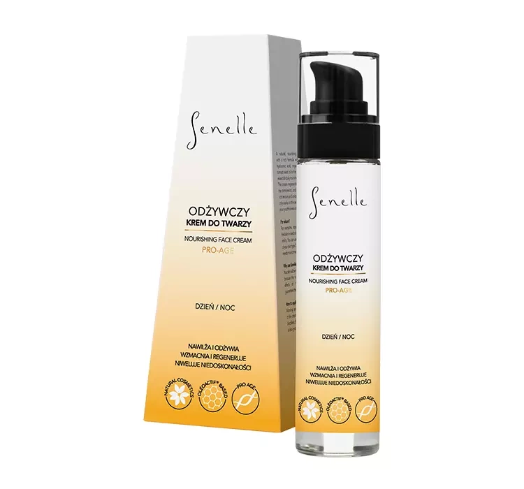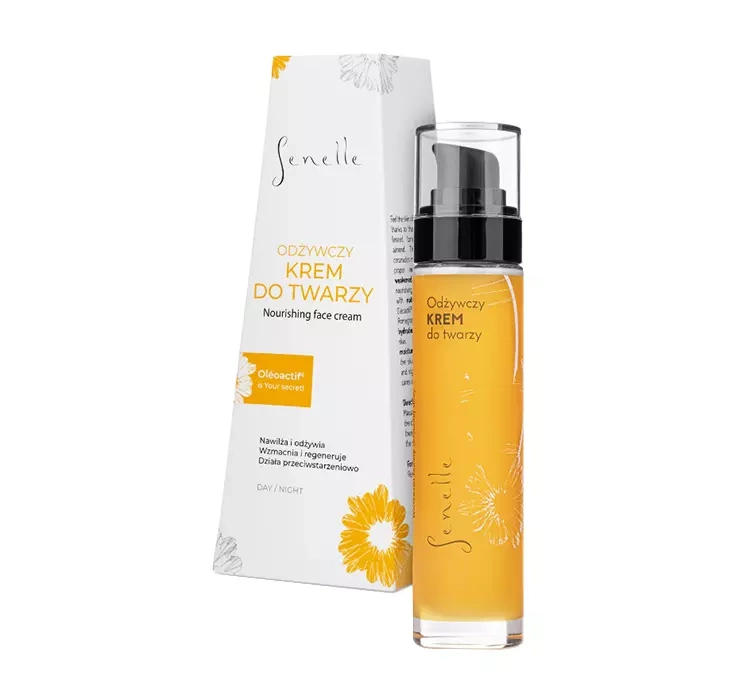 Живильний денний і нічний крем Senelle має оксамитову консистенцію, яка добре розподіляється і швидко вбирається. Його формула збагачена ефективними активними інгредієнтами, включаючи корисні олії: насіння томатів, солодкого мигдалю та льону. Ці складники боряться зі зморшками, мають антиоксидантні, пом'якшувальні та протизапальні властивості. Крім того, вони підтримують процеси регенерації епідермісу, заспокоюють подразнення і запобігають утворенню чорних крапок.