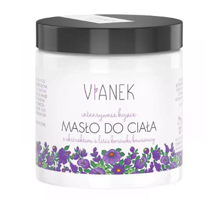 Фіолетова серія Vianek заснована на активних інгредієнтах, таких як екстракти ожини та каштану, екстракти листя брусниці та лавандова олія. Завдяки цьому косметичні засоби із цієї лінії демонструють антиоксидантні, зміцнюючі та заспокійливі властивості.