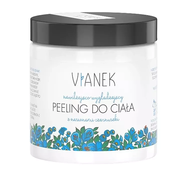Зволожувально-згладжувальний пілінг для тіла з насінням чорнушки та цукром, відшаровує мертвий епідерміс, зміцнює шкіру та ефективно захищає її від втрати води. Олія з зерен пшениці та вітамін Е, завдяки своїм властивостям роблять шкіру еластичною та забезпечують молодий вигляд. Легкий аромат робить масаж шкіри приємнішим, а ефекти будуть помітними вже після першого застосування.