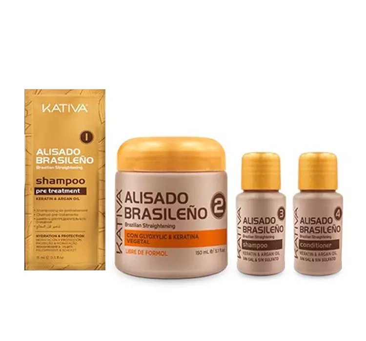 До складу набору Kativa Alisado Brasileño входять:шампунь для приготування до процедури, 15 мл