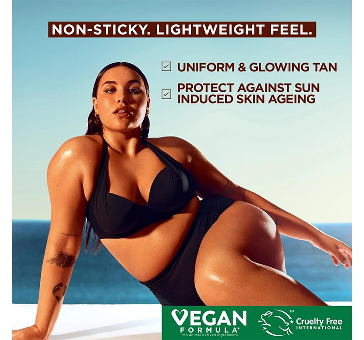 Oлія для прискорення засмаги Garnier Ideal Bronze також має доглядаючі властивості. Вона зволожує, запобігає надмірній втраті води та захищає від сухості. Крім того, продукт залишає шкіру шовковистою і гладкою на дотик, захищає її від передчасного старіння. Олія для прискорення засмаги SPF30 Garnier Ambre Solaire Ideal Bronze має приємну консистенцію, яка дуже легко розподіляється по шкірі та швидко вбирається, не залишаючи неприємного відчуття липкості.