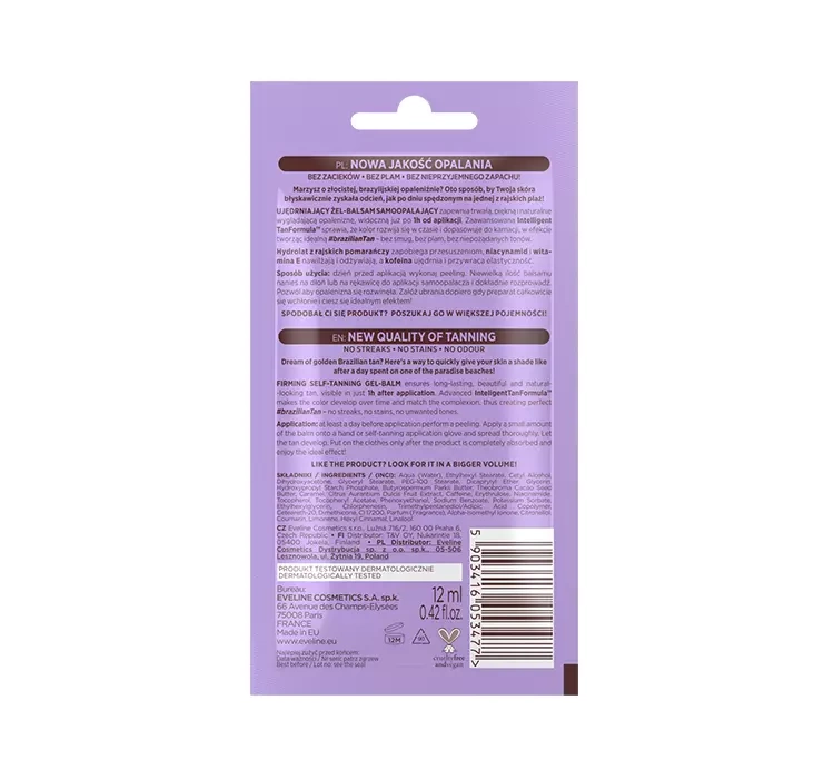 EVELINE BRAZILIAN BODY ГЕЛЬ-БАЛЬЗАМ ДЛЯ АВТОЗАСМАГИ 12МЛ