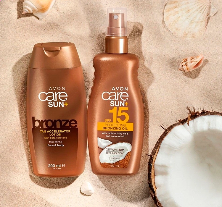 Avon Care Sun + – це унікальна лінія косметики, яка буде ідеальною в спекотні літні дні. Інноваційні формули продуктів розроблені з максимальною ретельністю і забезпечують не тільки ефективний захист від негативного впливу UVA-випромінювання, а й ідеально доглядають за подразненою шкірою після тривалого перебування на сонці. Пропозиція включає широкий вибір препаратів як із захисними фільтрами UV, так і заспокійливими формулами після сонячних ванн, а також для підкреслення засмаги, щоб Ви могли легко вибрати відповідний продукт для Ваших індивідуальних потреб.