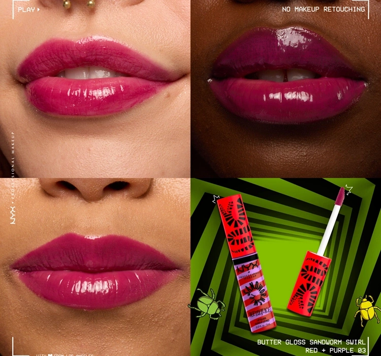 Відкрийте для себе новий вимір блиску та кольору разом з блисками для губ NYX Professional Makeup x Beetjuice Sandworm Swirl Butter Lip Gloss, представленими у чотирьох обмежених кольорах за мотивами фільму «Бітлджюс Бітлджюс». Цей блиск для губ – справжня перлина серед косметики для губ, яка не тільки надає губам чарівний колір, але й дарує інтенсивний, тривалий блиск.