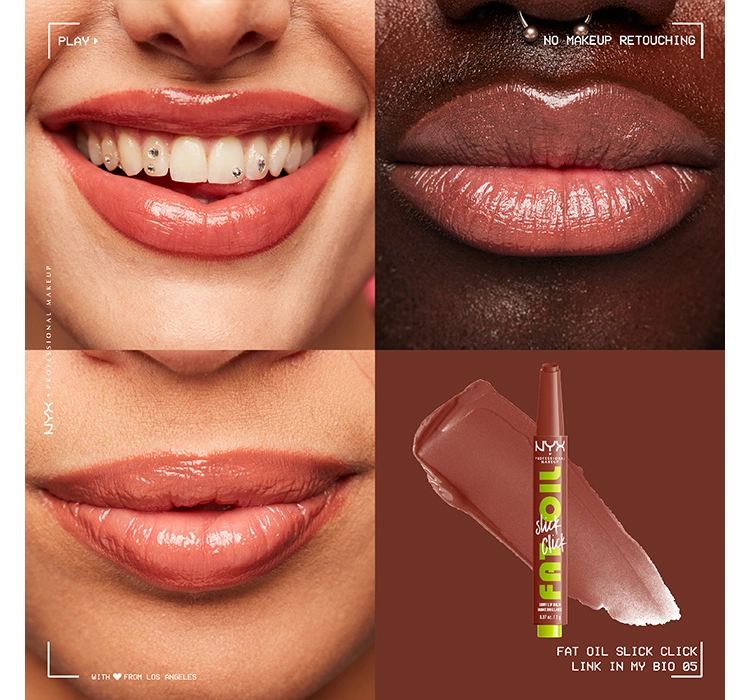 Блискучий бальзам для губ представлений в широкій палітрі відтінків, серед яких можна легко підібрати ідеальний колір, який найкраще підкреслить індивідуальний стиль кожної жінки. Безсумнівно, бальзами для губ Fat Oil Slick Click від NYX — це продукти, які змінять наше ставлення до догляду за губами. Завдяки інноваційній формулі та зручній упаковці бальзам-стік перетворить щоденний догляд за губами на справжнє задоволення.