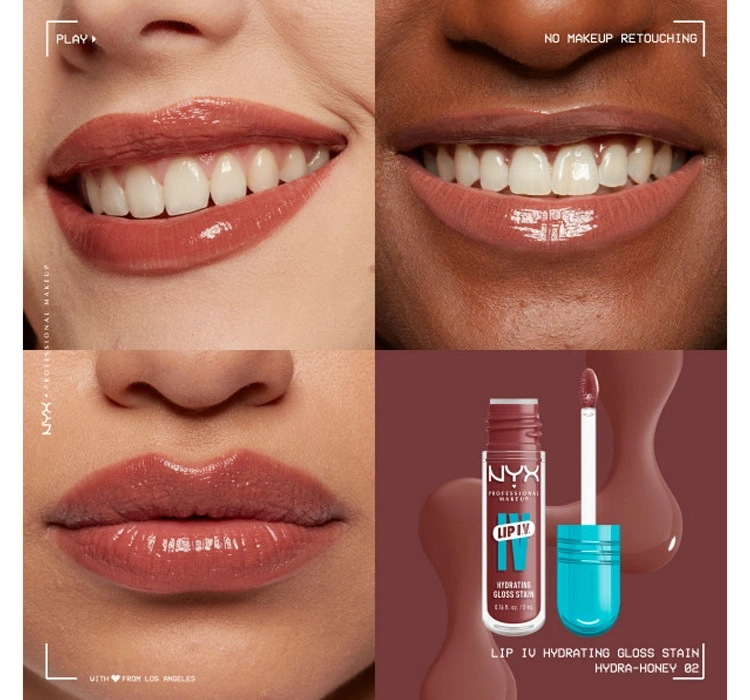 NYX Professional Makeup Lip IV Hydrating Gloss Serum - це інноваційний блиск для губ, який поєднує в собі інтенсивне сяйво із стійким ефектом кольору. Після першого нанесення засіб надає губам глибокий вологий блиск, який з часом змінюється на природний рівномірний колір.