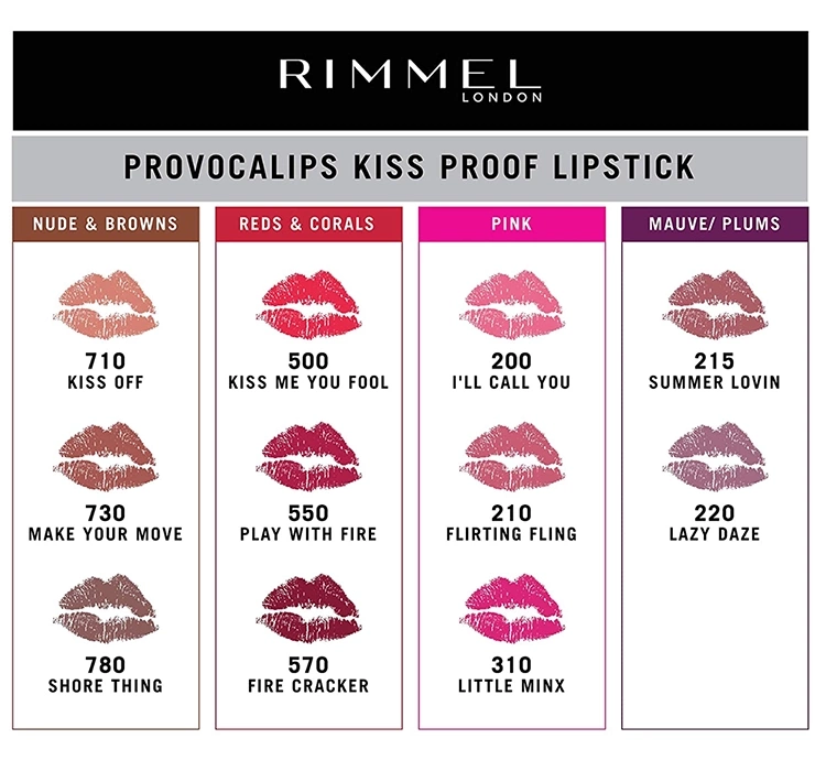 Rimmel Provocalips — це серія двосторонніх губних помад, які забезпечують високопігментований колір і ледь помітний блиск. Двофазна помада доступна в широкому діапазоні кольорів - від нюдових, через класичні червоні та рожеві, до більш сміливих кольорів. Кожен знайде колір для себе, який підходить для різних випадків і підкреслює індивідуальний характер.
