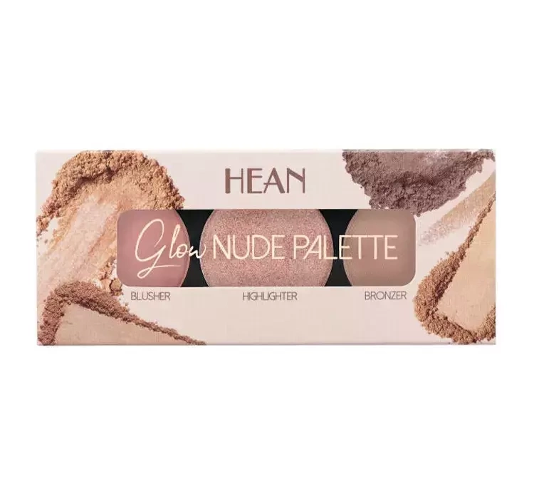 Палетка Glow Nude Hean містить три продукти для щоденного макіяжу. Їхні пресовані формули надзвичайно пігментовані та легко наносяться. Просто візьміть потрібну кількість бронзера, рум’ян або хайлайтера і обережно втирайте в поверхню шкіри. Ви самі визначаєте інтенсивність ефекту - залежно від власних уподобань, Ви можете застосовувати їх більш економно та створювати покриття. Змішуйте та поєднуйте кольори, щоб макіяж був однорідним.