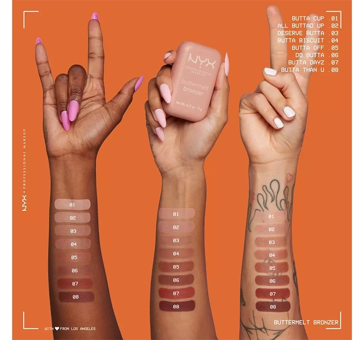 Отримайте сонячний, засмаглий вигляд та подбайте про комфорт Вашої шкіри разом з бронзером Buttermelt від NYX. Компактний бронзер Buttermelt має інноваційну формулу з консистенцією пресованої пудри, одночасно м’яку та оксамитову, яка виглядає на шкірі дуже природно, майже як після використання кремового бронзера! Цей продукт варто спробувати.