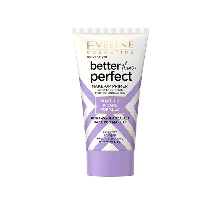 Європейському СоюзіБаза для обличчя Better Than Perfect від Eveline ідеально розгладжує шкіру, тим самим вирівнюючи її структуру, забезпечуючи ідеальний вигляд на багато годин. База ефективно зменшує виділення шкірного сала і наповнює обличчя ефектом blur. Формула розгладжуючої бази Eveline Better Than Perfect збагачена гіалуроновою кислотою, колагеном, керамідами та вітамінами С і Е. Ця комбінація активних інгредієнтів гарантує зволоження та відновлення шкіри.