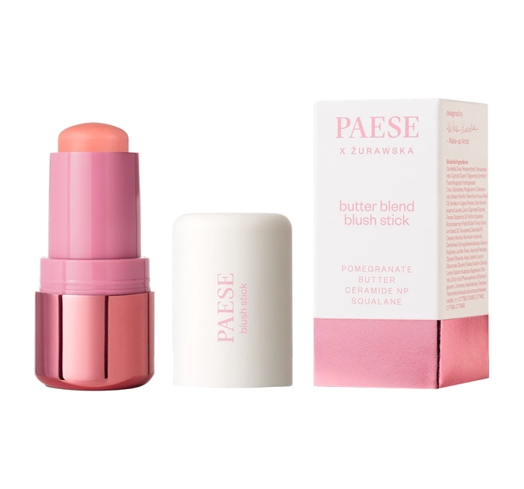 Рум’яна-стік Paese x Żurawska Butter Blend — інноваційний засіб, що дарує шкірі природний рум’янець, делікатне сяйво та свіжий, доглянутий вигляд. Ці веганські рум’яна, створені у співпраці з візажисткою Катажиною Журавською, легко наносяться, не залишають плям і гармонійно поєднують макіяж із доглядом. Завдяки компактному формату стік ідеально підходить для підправки макіяжу протягом дня — у дорозі, на роботі чи перед побаченням.