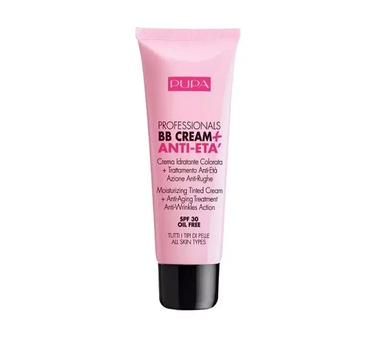 Pupa Professionals BB Cream + Anti Eta SPF 30 - це крем BB з антивіковою дією.Тонкі лінії та зморшки стають помітно розгладжені, а обличчя здається більш гладким. Підходить для будь-якого типу шкіри. Формула знежирена. Має фільтр SPF 30.