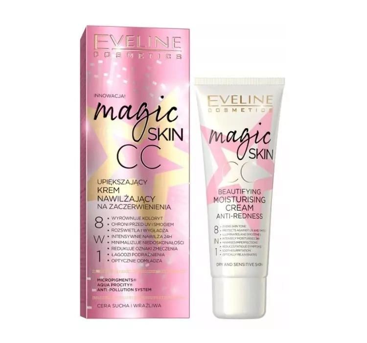 Eveline Magic Skin CC - це зволожуючий крем від почервоніння, який ефективно вирівнює тон шкіри і коректує всі недоліки шкіри.