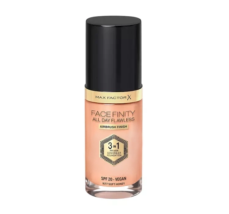 MAX FACTOR FACEFINITY ALL DAY FLAWLESS 3IN1 ВЕГАНСЬКИЙ ТОНАЛЬНИЙ ЗАСІБ N77 SOFT HONEY 30МЛ