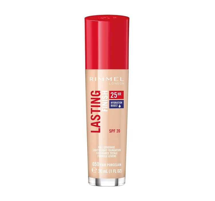 Rimmel Lasting Finish 25hr Hydration Boost Full Coverage Lightweight Foundation - це стійкий тональний засіб з високим рівнем покриття і легкою формулою, збагачений зволожувальною сироваткою та вітаміном E.