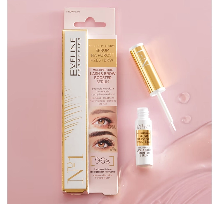 Асортимент популярного бренду Eveline поповнився унікальною сироваткою для росту вій і брів, яка подарує їм чудовий зовнішній вигляд та подбає про здоров'я. Сироватка Eveline Multipeptide Lash & Brow Booster Serum - це гарантія здорових, міцних і густих брів і вій. При регулярному застосуванні вона не тільки зробить волосся довгим та густим, але й подарує чудовий догляд, наповнюючи вій та брови корисними активними інгредієнтами. Оберіть мультипептидну сироватку від Eveline і насолоджуйтесь здоровими та міцними бровами та віями.