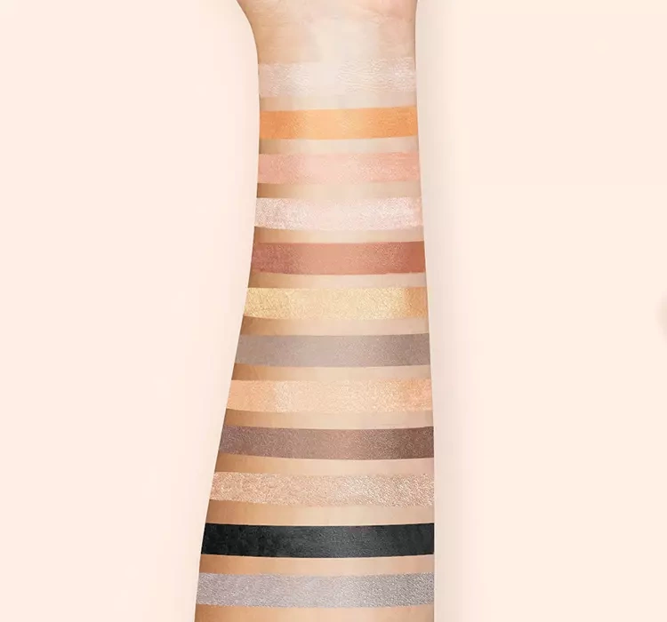 Тіні для повік знаходяться в елегантній палітрі Glam Nude, вони легко розподіляються по повіці та легко розтушовуються. Тіні не скочуються в складках повік і не осипаються.
