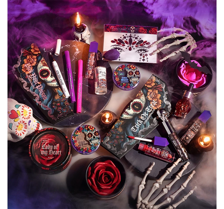 Час відмовитися від повсякденності та поринути в містичну, але водночас радісну атмосферу Хелловіна! Колекція Wibo Día de los Muertos, натхненна Санта Муерте, перенесе Вас у світ, сповнений інтенсивних кольорів, яскравого макіяжу та таємничості.