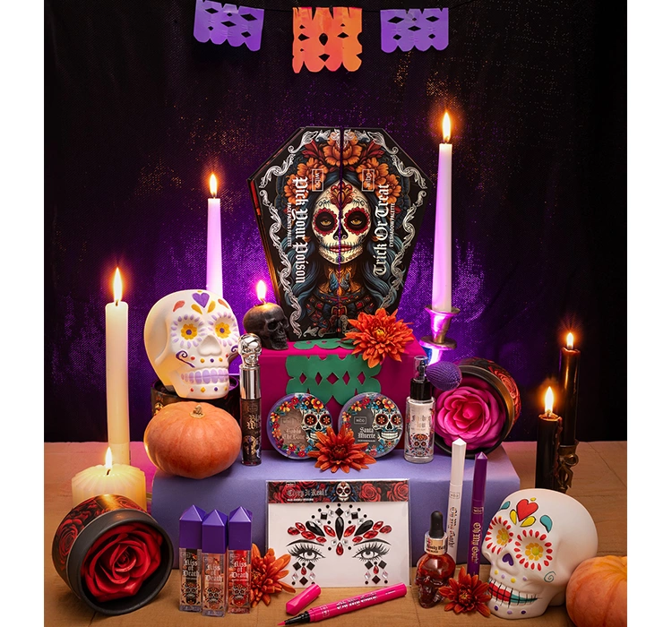 Косметика, натхненна багатою символікою Día de los Muertos, виділяється сміливими кольорами та дивовижними ефектами. Ви знайдете тут помади, які додадуть блиску будь-якому макіяжу, чарівні тіні для повік, які ідеально підкреслять будь-який образ, а також багато іншого.