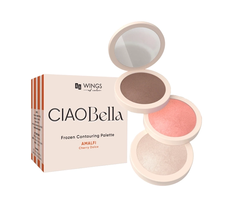 Зручна, компактна упаковка з дзеркальцем робить Frozen Contouring Palette від AA CIAO Bella ідеальною для щоденного використання вдома та в подорожах. Завершує композицію чуттєвий аромат з нотами вишні, малини, сандалового дерева, квітки апельсина, мускусу та амбри, що робить ритуал макіяжу ще приємнішим, додаючи йому нотки розкоші та елегантності.