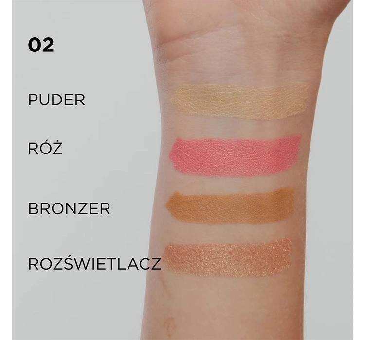 Контурна палітра Eveline Wonder Match доступна в двох варіантах. Набір із чотирьох продуктів дозволить змоделювати та підкреслити риси обличчя. Палетка має приємний шоколадний аромат. Це веганський продукт.