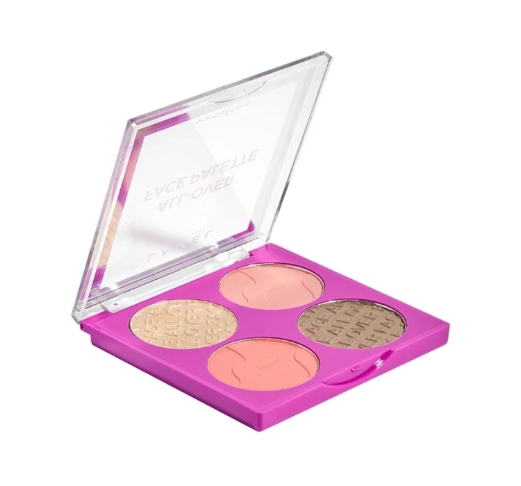 Палетка Lamel All Over Face Palette — це багатофункціональна палетка для контурингу обличчя, яка дозволяє гармонійно підкреслити риси, надати шкірі свіжості та природного сяйва. Усе, що потрібно для створення ідеального макіяжу, — бронзер, хайлайтер і два відтінки рум’ян — зібрано в одному компактному форматі. Кожен відтінок має запечену текстуру, що дарує м’яке світловідбивне покриття та багатовимірний фініш.