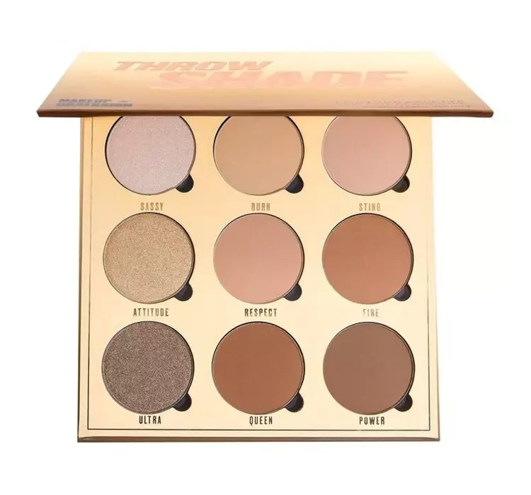 Палетка для контурування обличчя Throw Shade Contour Palette містить 9 хайлайтерів і брозерів з різними відтінками та фінішами.