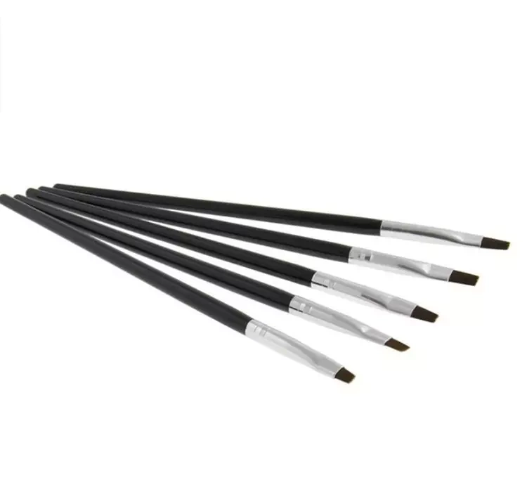 Плоский пензель - підходить для нанесення УФ-гелю, ворсинки лежать по прямій лінії. Пензлем можна накладати білий гель на лінію посмішки, класичний гель біля лінії кутикули і малювати акриловими фарбами.