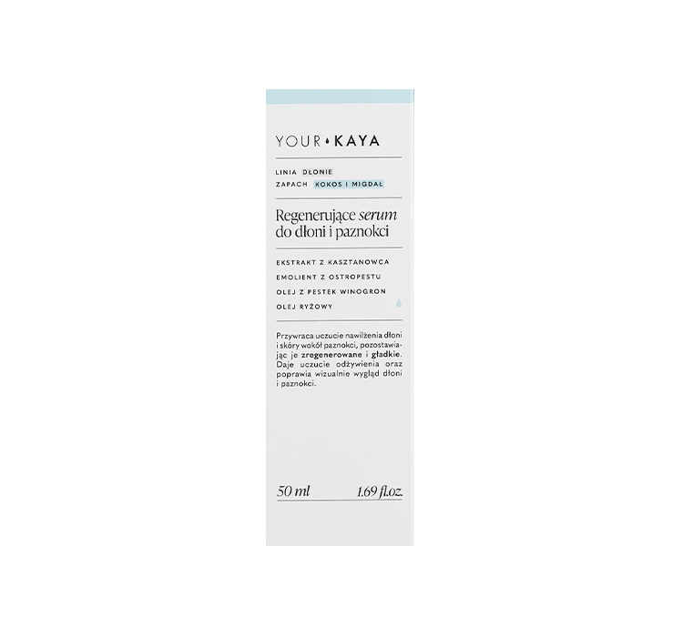 ПольщаВідновлююча сироватка для рук і нігтів Your KAYA має формулу, що містить дорогоцінні активні інгредієнти, які забезпечують інтенсивний догляд. Косметичний засіб містить екстракт каштана, пом'якшувач з розторопші, олії рису та виноградних кісточок. Таке поєднання робить шкіру та нігті відновленими та зволоженими.
