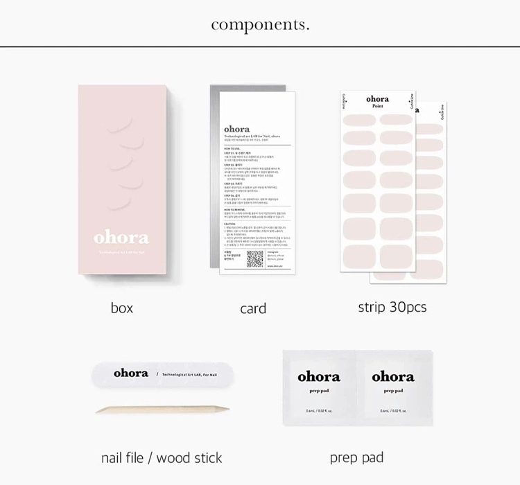 Південна КореяВиконання манікюру і педикюру за допомогою гель-лаків, незважаючи на свою стійкість, це довгий та трудомісткий процес. Бренд Ohora поставив собі за мету скоротити час, необхідний для професійного фарбування нігтів, зберігаючи при цьому стійкість і естетичність. Так виникли гелеві наклейки для нігтів, які є запорукою красивого манікюру, економії часу та здоров'я нігтьової пластини. Гелеві наклейки для нігтів Ohora - це три шари традиційного на 60% затверділого гель-лаку для нігтів. Завдяки цьому наклейки ідеально пасуватимуть до різних форм і розмірів нігтьової пластини.
