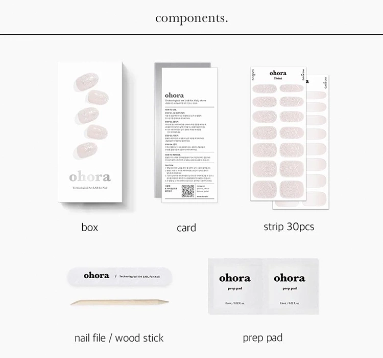Південна КореяВиконання манікюру і педикюру за допомогою гель-лаків, незважаючи на свою стійкість, це довгий та трудомісткий процес. Бренд Ohora поставив собі за мету скоротити час, необхідний для професійного фарбування нігтів, зберігаючи при цьому стійкість і естетичність. Так виникли гелеві наклейки для нігтів, які є запорукою красивого манікюру, економії часу та здоров'я нігтьової пластини. Гелеві наклейки для нігтів Ohora - це три шари традиційного на 60% затверділого гель-лаку для нігтів. Завдяки цьому наклейки ідеально пасуватимуть до різних форм і розмірів нігтьової пластини.
