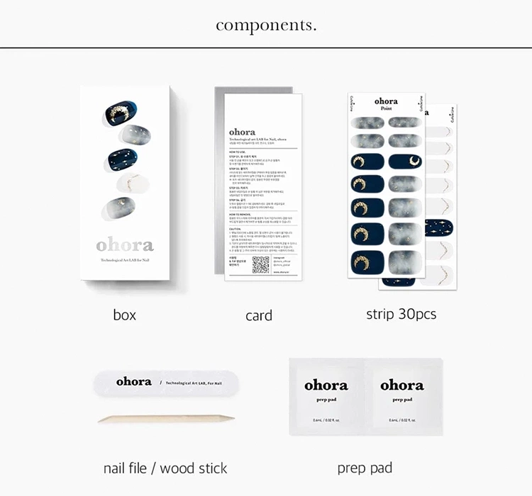 Південна КореяВиконання манікюру і педикюру за допомогою гель-лаків, незважаючи на свою стійкість, це довгий та трудомісткий процес. Бренд Ohora поставив собі за мету скоротити час, необхідний для професійного фарбування нігтів, зберігаючи при цьому стійкість і естетичність. Так виникли гелеві наклейки для нігтів, які є запорукою красивого манікюру, економії часу та здоров'я нігтьової пластини. Гелеві наклейки для нігтів Ohora - це три шари традиційного на 60% затверділого гель-лаку для нігтів. Завдяки цьому наклейки ідеально пасуватимуть до різних форм і розмірів нігтьової пластини.