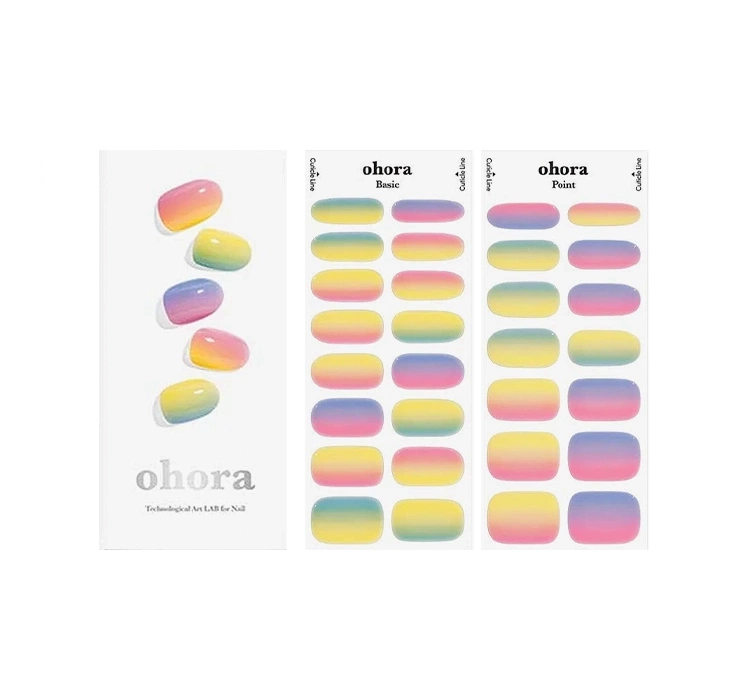 Південна КореяВиконання манікюру і педикюру за допомогою гель-лаків, незважаючи на свою стійкість, це довгий та трудомісткий процес. Бренд Ohora поставив собі за мету скоротити час, необхідний для професійного фарбування нігтів, зберігаючи при цьому стійкість і естетичність. Так виникли гелеві наклейки для нігтів, які є запорукою красивого манікюру, економії часу та здоров'я нігтьової пластини. Гелеві наклейки для нігтів Ohora - це три шари традиційного на 60% затверділого гель-лаку для нігтів. Завдяки цьому наклейки ідеально пасуватимуть до різних форм і розмірів нігтьової пластини.