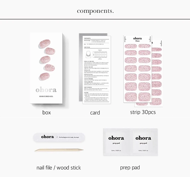 Південна КореяВиконання манікюру і педикюру за допомогою гель-лаків, незважаючи на свою стійкість, це довгий та трудомісткий процес. Бренд Ohora поставив собі за мету скоротити час, необхідний для професійного фарбування нігтів, зберігаючи при цьому стійкість і естетичність. Так виникли гелеві наклейки для нігтів, які є запорукою красивого манікюру, економії часу та здоров'я нігтьової пластини. Гелеві наклейки для нігтів Ohora - це три шари традиційного на 60% затверділого гель-лаку для нігтів. Завдяки цьому наклейки ідеально пасуватимуть до різних форм і розмірів нігтьової пластини.
