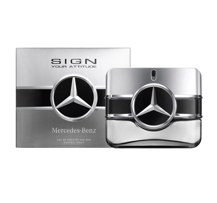 Чоловік Mercedes-Benz Sign Your Attitude – успішний у всіх сферах життя. Вона надихає своєю сміливістю, індивідуальністю, цілеспрямованістю та впевненістю у собі. Аромат Sign Your Attitude поміщений у сучасний флакон у відтінках сірого, увінчаний трикутною зіркою – візитною карткою бренду Mercedes-Benz, яка символізує прагнення до досконалості..