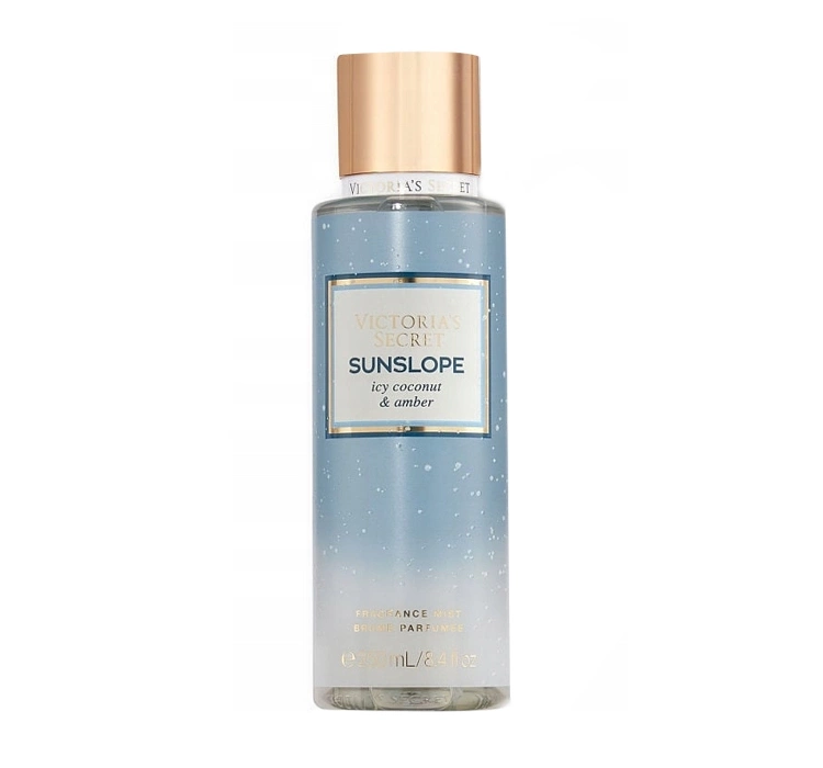 Victoria's Secret Sunslope - це унікальний парфумований спрей для тіла, що поєднує в собі освіжаючий аромат кокоса, сонячної амбри та кремового мускусу. Це ідеальний вибір для людей, які люблять свіжі та солодкі аромати. Спрей легкий і забезпечує тривале відчуття свіжості кожного дня.