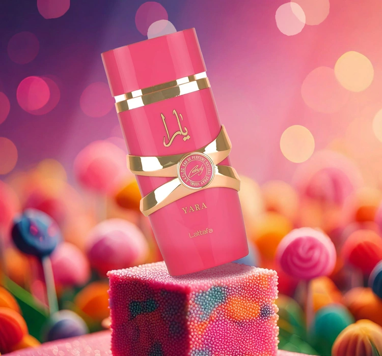 Аромат відкривається соковитими нотами зеленого мандарина і чорної смородини, які надають йому свіжий, енергійний характер. У серці аромату Yara Candy розквітає гарденія, оточена солодкими акордами блискучої полуничної цукерки. Це поєднання викликає приємні спогади про літо, наповнене сонцем і радістю. У базі представлені кремовий ванільний сироп, сандалове дерево, мускус і амбра, які надають композиції теплоти і стійкості.