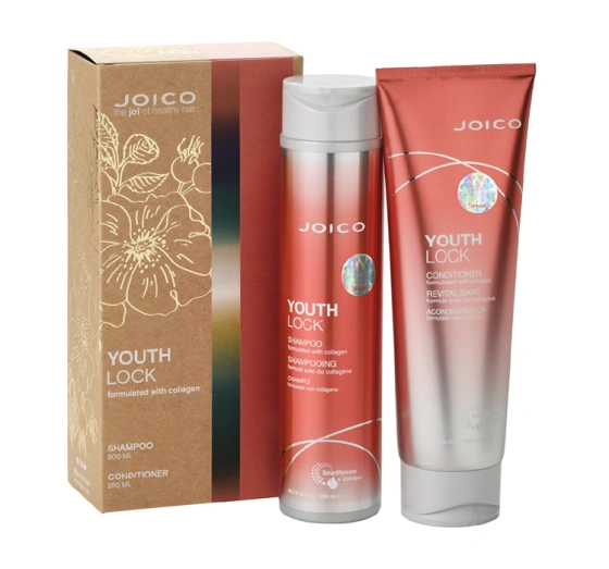 Формула косметичних засобів із набору Joico YouthLock розроблена спеціально для потреб зрілого волосся. Активні інгредієнти глибоко живлять пасма, зміцнюють їх зсередини та надають здорового, сяйливого вигляду. Засоби, що входять до набору, відновлюють структуру волосся, підвищують його еластичність і пружність, забезпечуючи помітний результат уже після першого використання. Розкішна консистенція та делікатний аромат перетворюють щоденний догляд на справжній б’юті-ритуал.