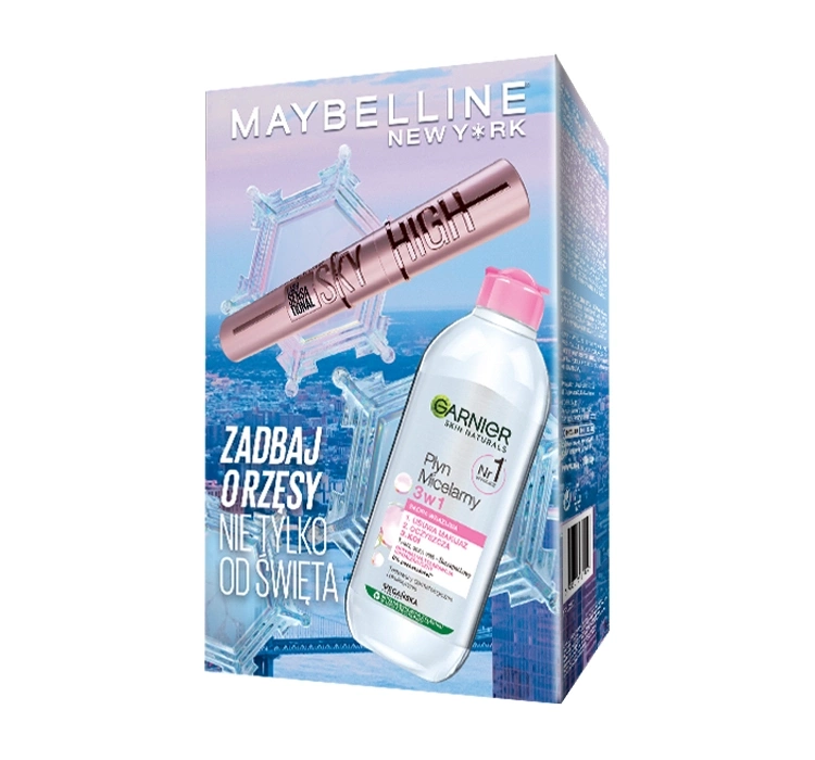 MAYBELLINE ПОДАРУНКОВИЙ НАБІР ТУШ ДЛЯ ВІЙ SKY HIGH + МІЦЕЛЯРНА ВОДА GARNIER